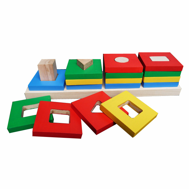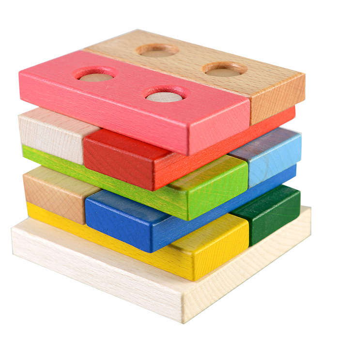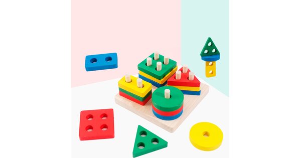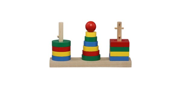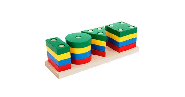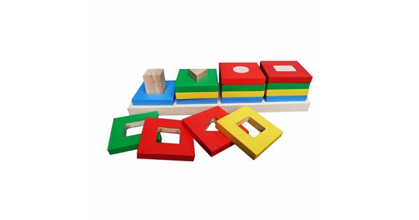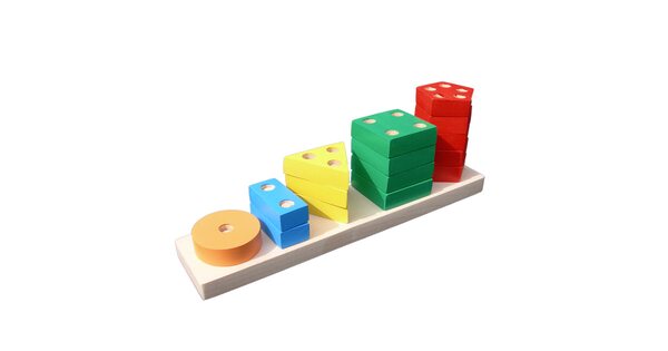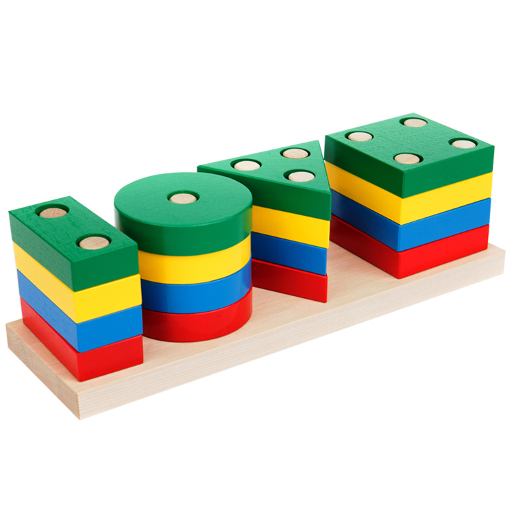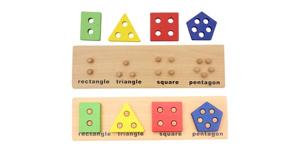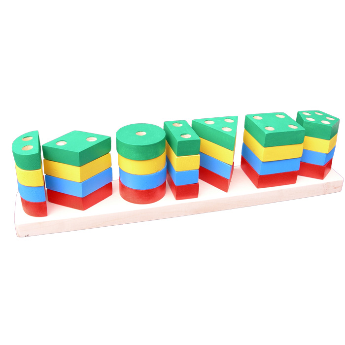 Большой популярностью пользуются сортеры с геометрическими фигурами. Как правило, они собираются по типу детской пирамидки. На деревянные оси нужно нанизывать деревянные детали в виде геометрических фигур. Чтобы «помочь» юному конструктору, у каждой фигурки сколько отверстий, сколько углов. Соответственно треугольник можно надеть только на подставку с тремя вертикальными элементами.