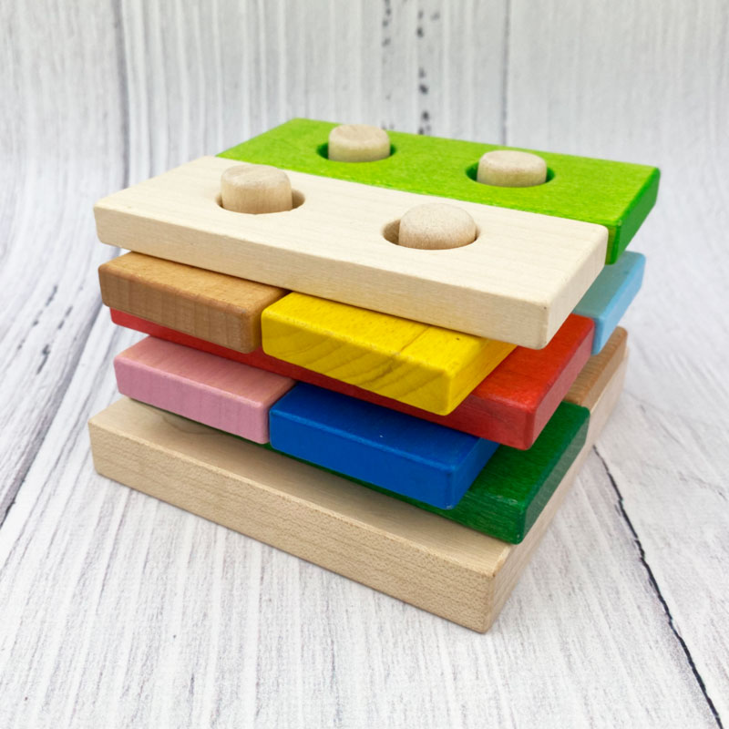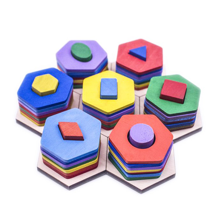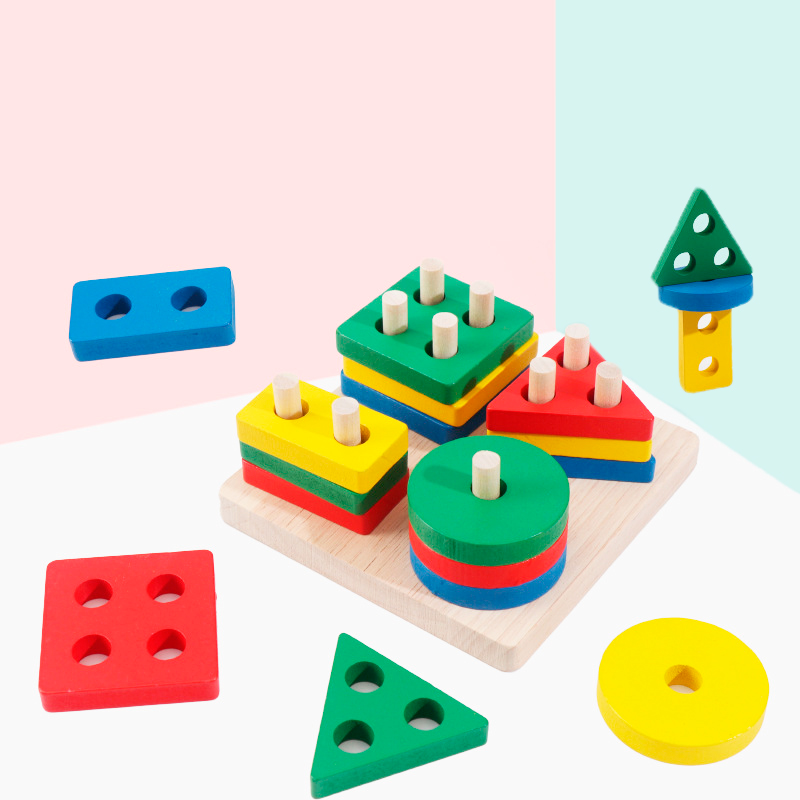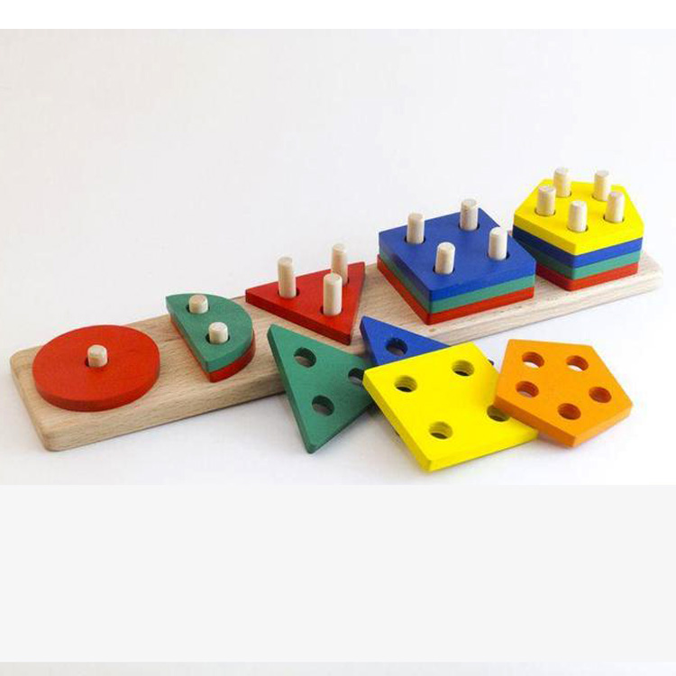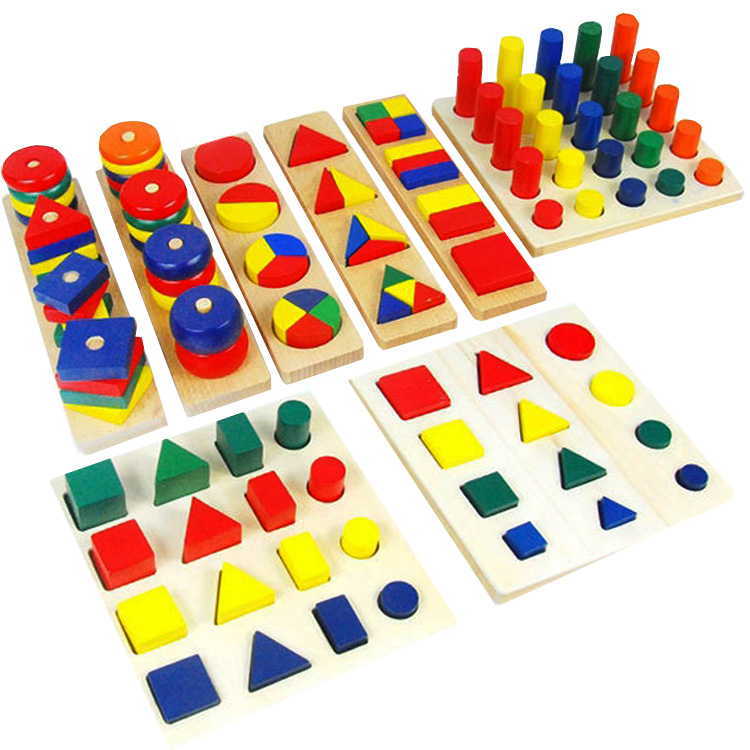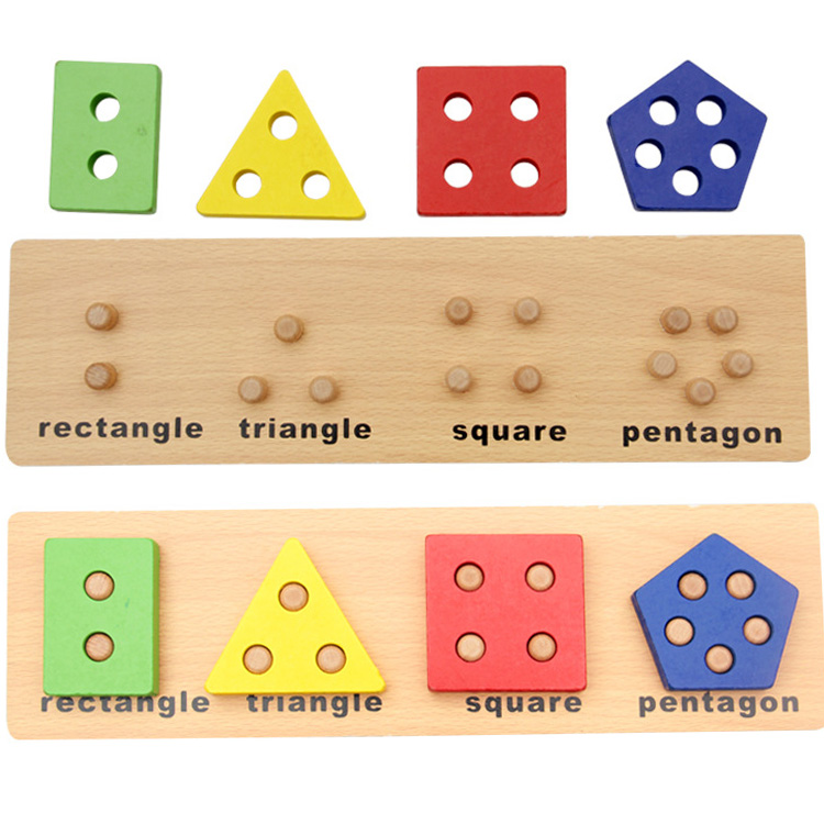 Большой популярностью пользуются сортеры с геометрическими фигурами. Как правило, они собираются по типу детской пирамидки. На деревянные оси нужно нанизывать деревянные детали в виде геометрических фигур. Чтобы «помочь» юному конструктору, у каждой фигурки сколько отверстий, сколько углов. Соответственно треугольник можно надеть только на подставку с тремя вертикальными элементами.