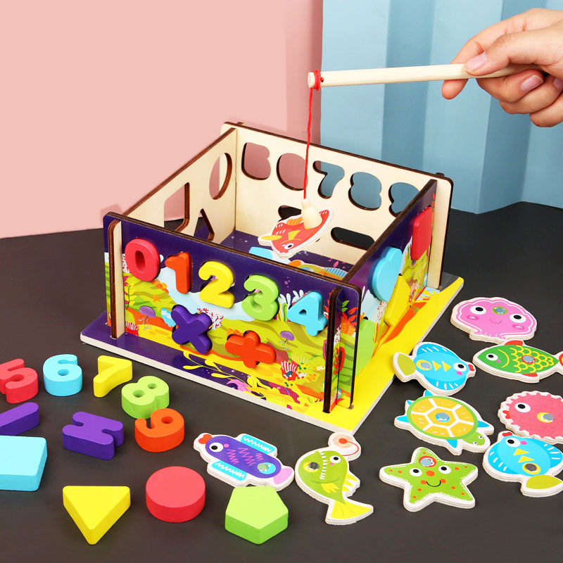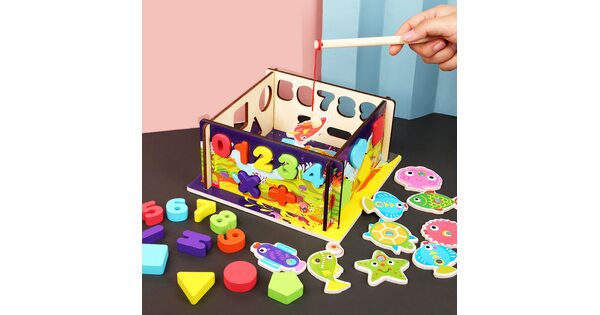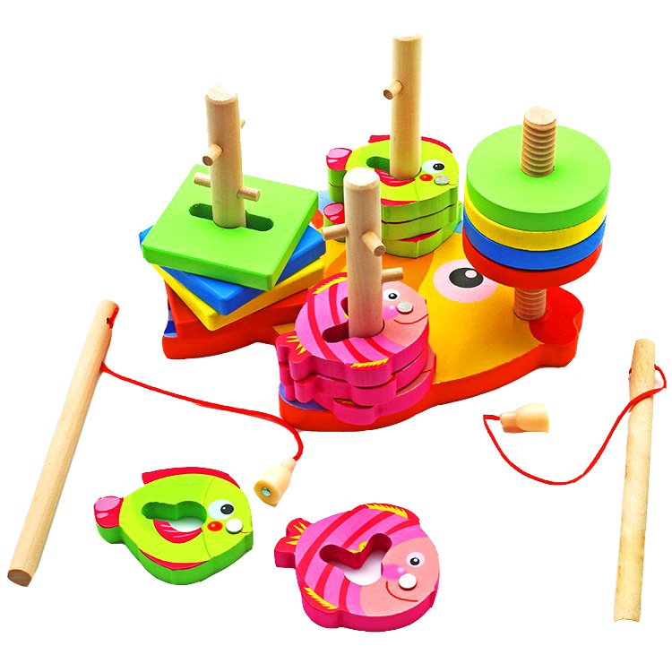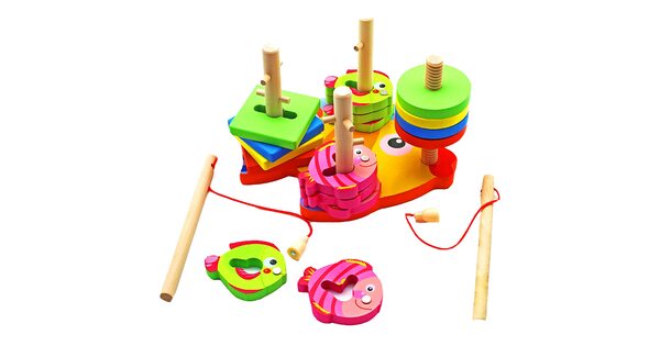 Большой интерес родителей вызывают комплексные деревянные игрушки с несколькими функциями. Например, магнитная рыбалка: в ней элементы из ячеек можно доставать специальной удочкой. Или матрешка – забавная куколка для ролевых игр и в то же время – логическая игрушка.
