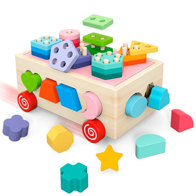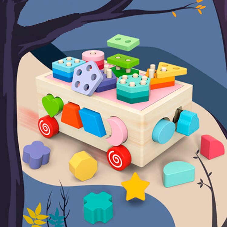 Каталка "Геометрика" состоит из шести разных геометрических фигур с разным количеством дырочек, которые расположены на основе с колесиками. Удобно и практично для ребенка, можно просто катить игрушку за собой, а не носить ее. Также на гранях каталки размещены отверстия в виде геометрических фигур, для каждой фигуре свое "окошечко".