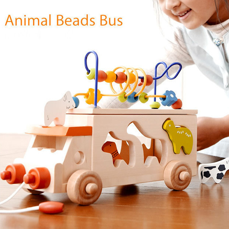 Сортер в виде каталки-автобуса на колесиках с отверстиями для животных. Такой себе перевозной зоопарк. На крыше машинки размещен пальчиковый лабиринт с разноцветными бусинками. Полезная игрушка для развития сенсорных навыков и мелкой моторики.