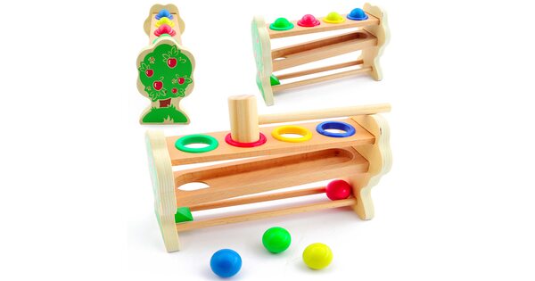 Проведенные опросы показали, что стучалки с шариками и молоточком наиболее распространены и более увлекательны. Малыш не останется равнодушным при виде такой игрушки и обязательно уделит ей должное внимание. Интересно наблюдать и за шариками различных оттенков, которые после удара молотком скатываются по деревянным горкам и дорожкам к основанию. Дети получают настоящее удовольствие даже от наблюдения за тем, как скатываются шарики.