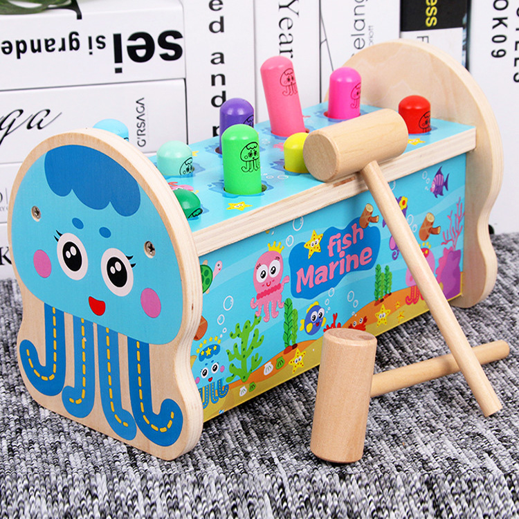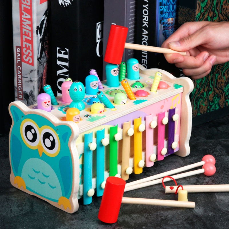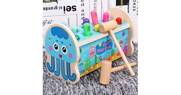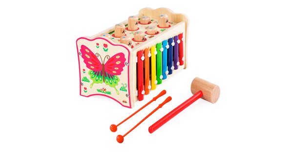 Игрушка стучалка развивающего типа подходит для развития детишек от года. Вся суть игры заключается в необходимости забивать пластмассовые или деревянные гвозди, шарики в специальные отверстия. Она позволяет снять всю накопленную нервозность или агрессию, а также приобрести ловкость рук и особую силу. Играя, ваш малыш сможет выплеснуть все негативные эмоции. Стучалка крайне важна и актуальна для гиперподвижных и эмоциональных ребят. К тому же, ваш малыш научится правильно удерживать в руках молоточек и научится забивать гвозди.