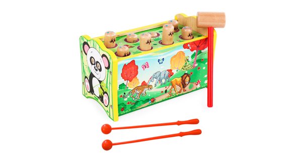 Детские годы, начиная с рождения, крайне важны и необходимо провести их максимально ярко и радостно, красочно и познавательно. Именно с этого времени начинается формирование характера и личности каждого маленького вундеркинда. Соответственно, складывается и его дальнейшая судьба. Именно поэтому стоит уделить особое внимание правильному выбору развивающих и обучающих игрушек, которые помогут сделать детство более радостным. Выбрав стучалку, вы поможете своему малышу развить правильную координацию движений, внимательность, мелкую моторику и ловкость рук, поскольку необходимо попасть деревянным молоточком по нужному шарику или гвоздику.