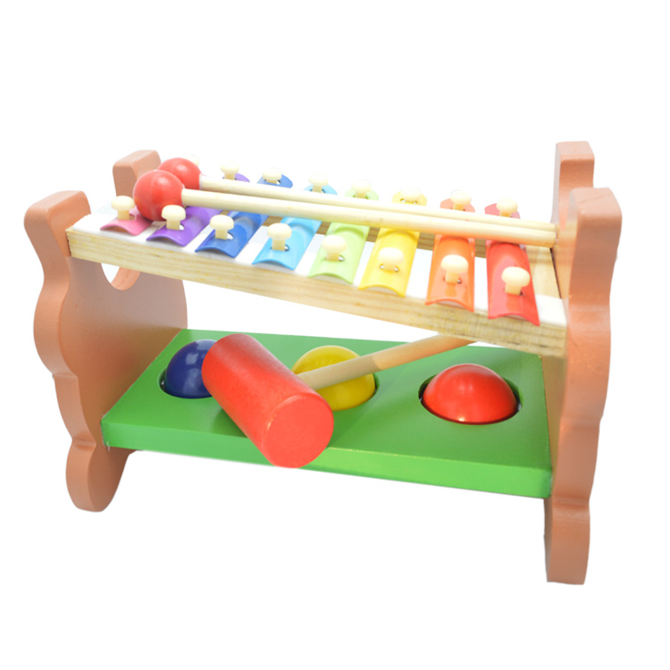 Порадуйте кроху новой игрушкой. Да еще 2 в 1: стучалка с шариками и музыкальный ксилофон (8 тонов). Игрушкой можно играть на одной стороне как стучалкой, а перевернув - ксилофоном.