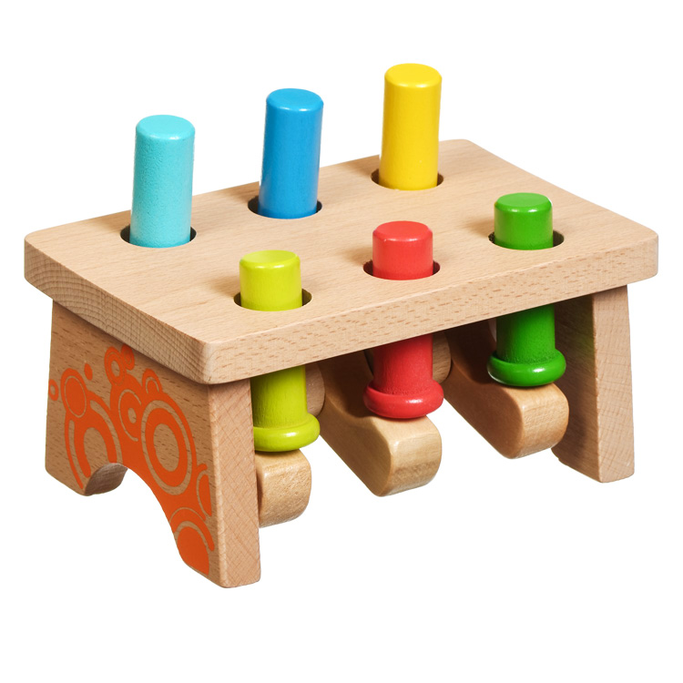 Сразу покупала 2 стучалки. Эту и просто гвозики. Вторая пока интересует больше. В этой просто пальцами всавляем цылиндрики. Нам год. Думаю позже она будет ребенку интереснее. Рассмотреть сам механизм. Сделанно очень качественно. |