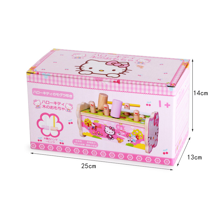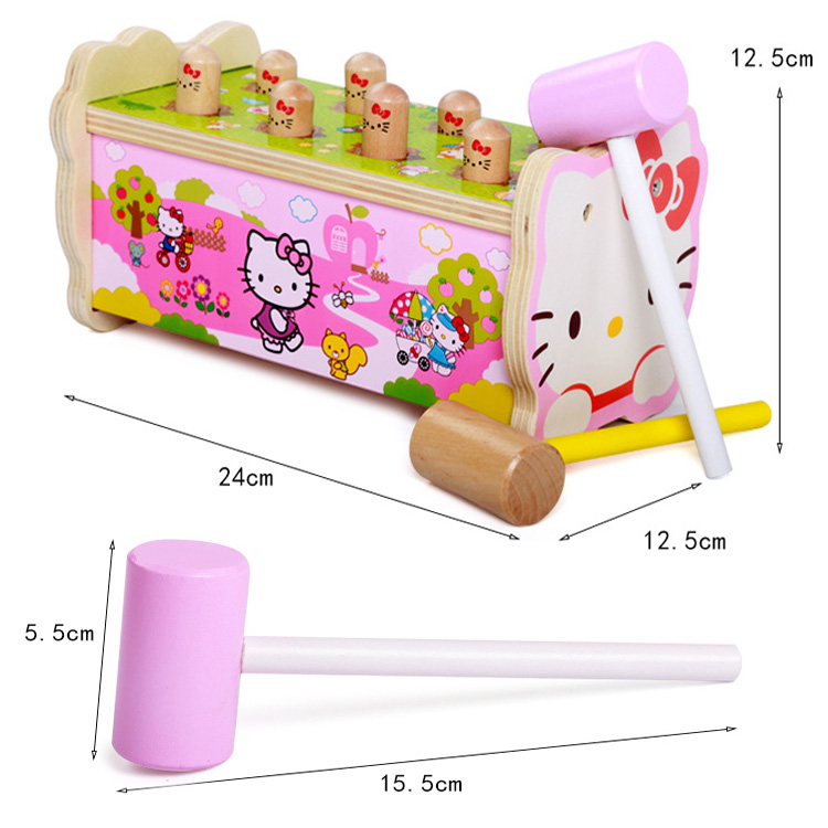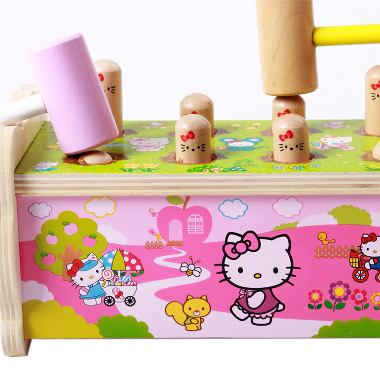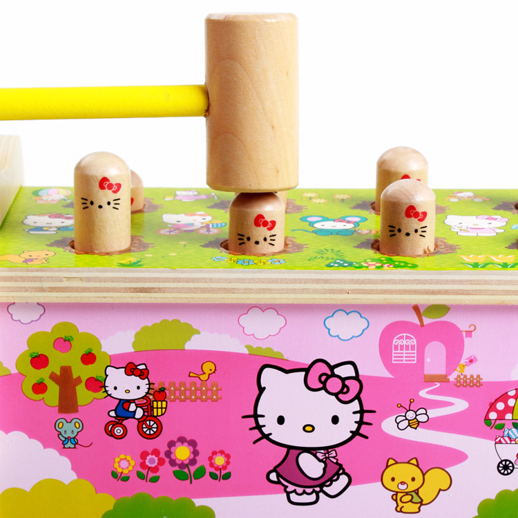 Игрушка класса стучалок прекрасно развивает координацию и моторику. Во время игры «работают» разные группы мышц, улучшается глазомер, растет скорость реакции. Малышу необходимо попасть молоточком по маленькой «головке». Для годовалого карапуза это совсем не просто! Чтобы игра проходила весело, можно включить ритмичную музыку. Особенность охоты на кротиков «Hello, Kitty» в том, что, забив всех «червячков» в пазы, можно перевернуть стучалку другой стороной!