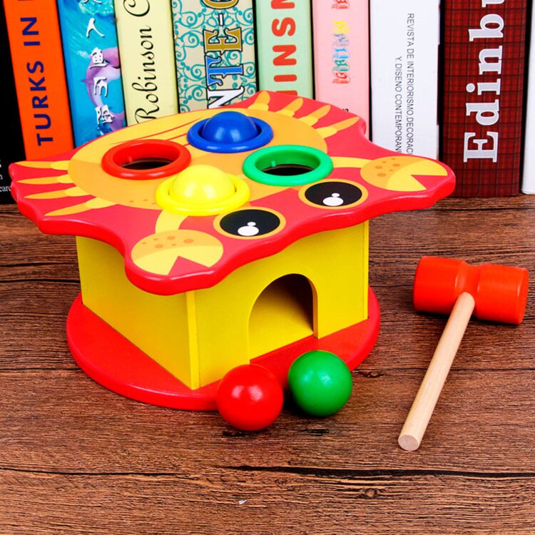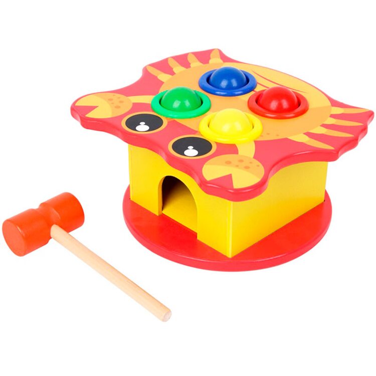 Развиваем моторику и координацию движения. Учимся точно наносить удар по шарику молоточком. Стучалка и молоточек выполнены в ярком дизайне в виде крабика.