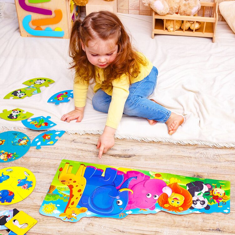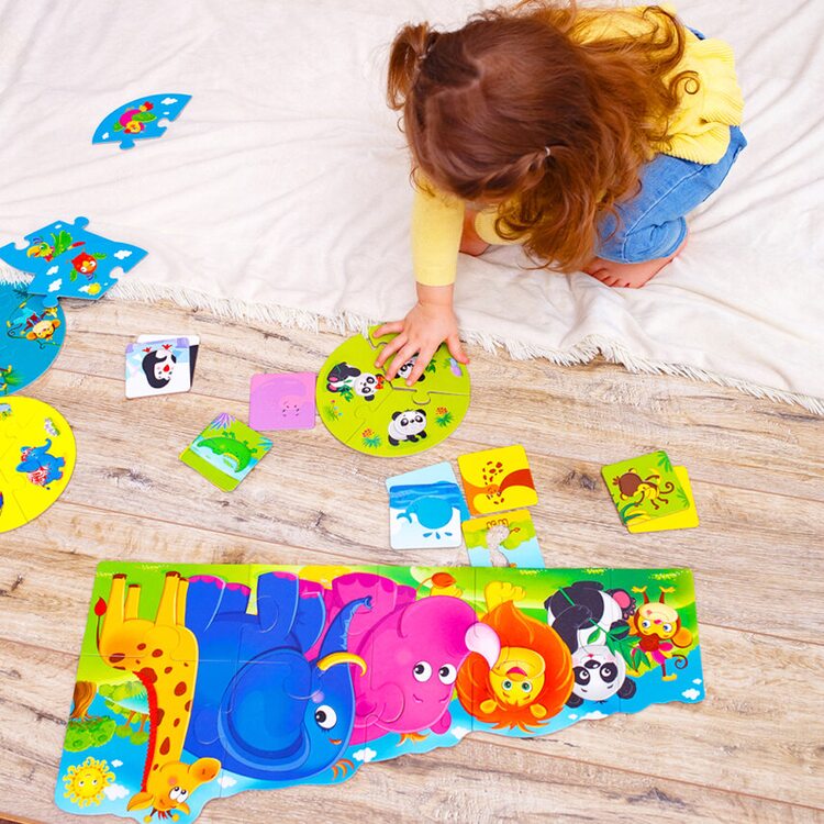 | Розміри | уп. 30х25,5х9 см. Пазли: 17х17х0,3 см. Довжина пазла тварини: 60 см. |
