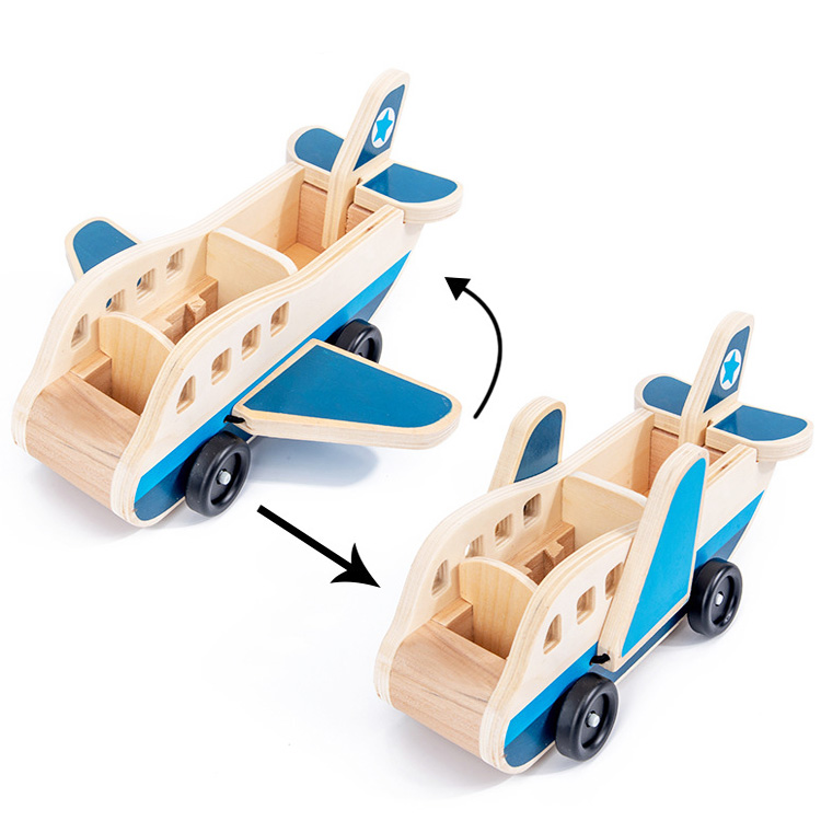 Симпатичний Авіалайнер з натуральної деревини - це оригінальний різновид іграшки з категорії «Каталки, на ниточці». Модель літака включає в свою комплектацію не тільки повітряний транспортний засіб, але і фігурки пілота, пасажирів і багаж, що складається з 4 валіз з речами.