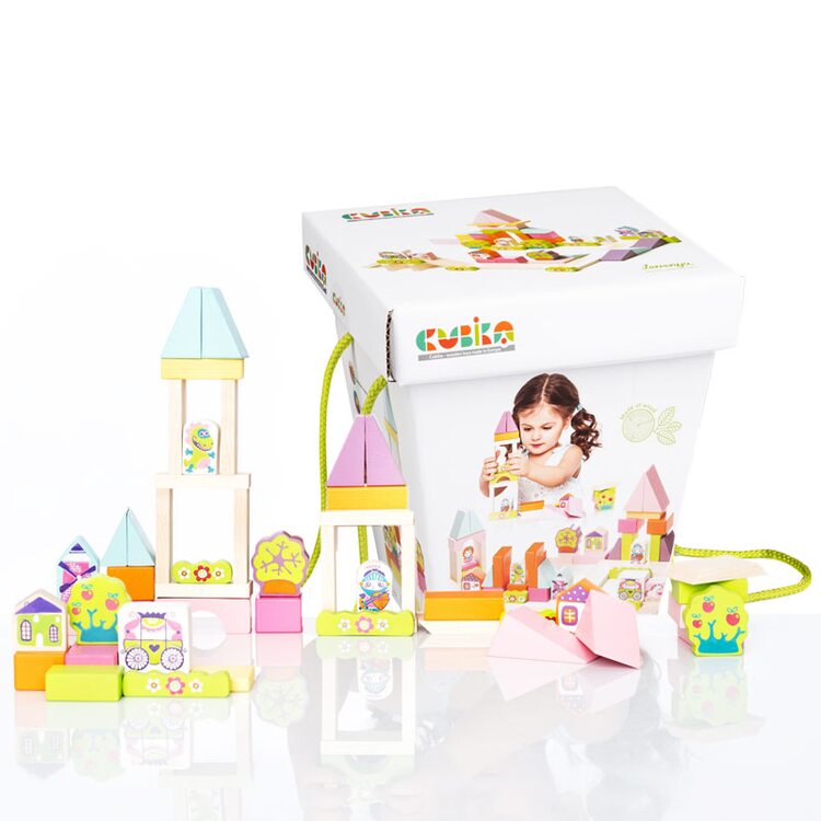 Справжній дерев'яний конструктор для дівчаток. З деталей можна вибудувати прекрасний замок для принцеси, де її охороняє злий дракон, але обов'язково з'явиться хоробрий принц-лицар і врятує її, і будуть вони жити довго та щасливо як в казці. У набір також входять деталі з намальованими фігурками принцеси, лицаря, дракона, коня, карети, дерев і багато іншого.