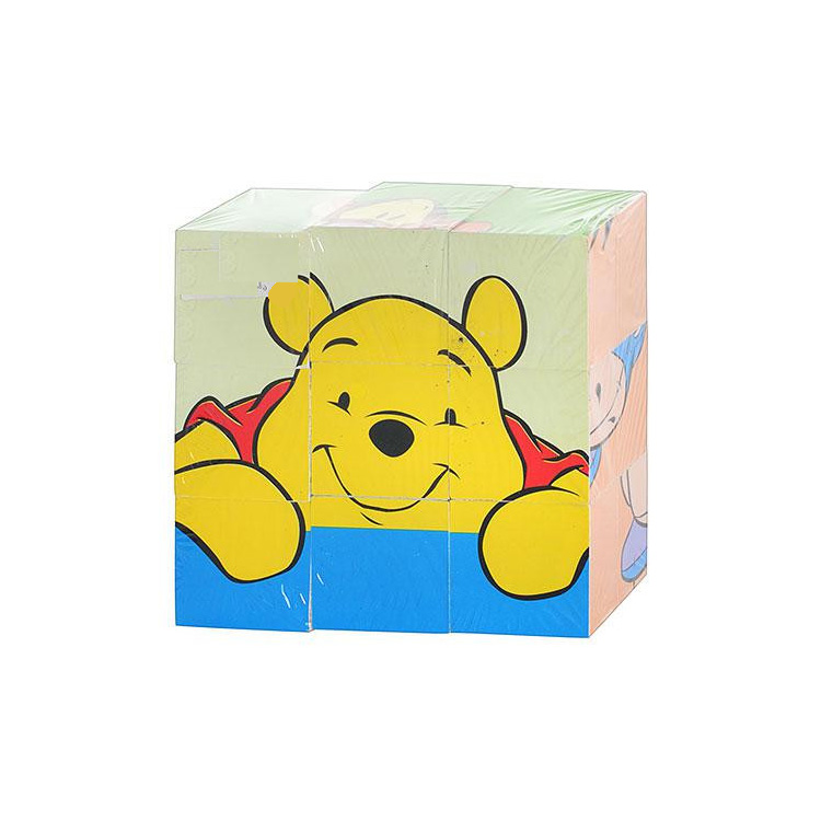 Кубики з картинками дозволяють збирати шість зображень. Перевертаючи кубики як пазли, можна збирати картинки з улюбленими героями історії про пригоди Вінні Пуха. Завдання скласти малюнок з частин перетворюється для малюка в серйозне тренування його комбінаторних здібностей. Коли ваш юний дослідник збере з різних частин цілу картинку, можна попросити його розповісти про цього персонажа свою історію. Так за допомогою картинки дитина може вивчати букви. Кубики можна рахувати і будувати з них міста і башточки. Ваш малюк неодмінно захопиться цією головоломкою.