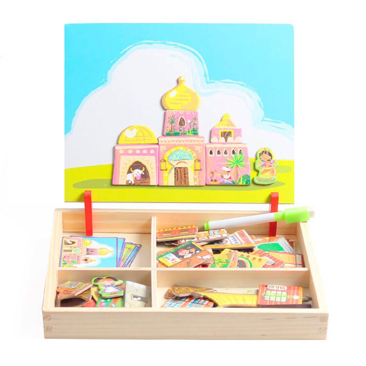 Магнітна гра "Подорож" захована в чарівній скриньці - можна грати нею в будинку або взяти з собою в дорогу. Набір магнітних фігурок дозволить створювати зображення різних будівель, а маркер на водній основі - дасть дитині можливість втілити свої фантазії на зворотному боці дошки. Цей диво-конструктор простий і цікавий, за це він користується популярністю у дітей і батьків. До магнітної грі "Подорож" додається в якості зразка 7 карток з відомими архітектурними спорудами.