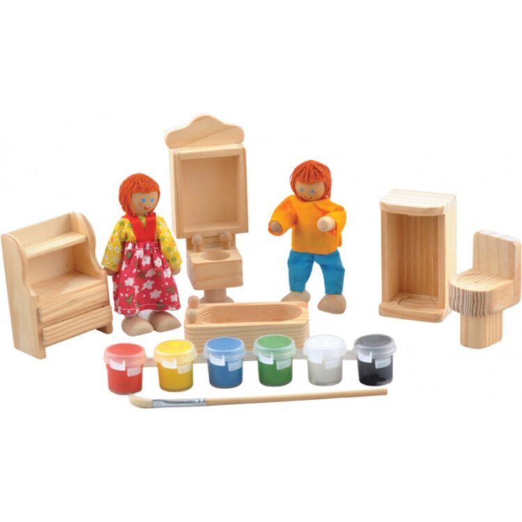 У наборі 6 предметів ванної кімнати і також до них додається пензлик і фарби.