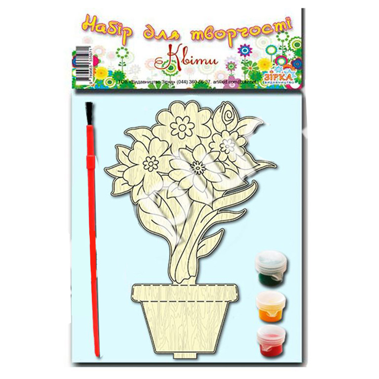 Яскравий букет для мами або бабусі, зроблений майже що "своїми руками" - це забава, задоволення і пам'ятний подарунок для того, хто тобі важливий. Набір разом з фарбами і пензликом - прагматично, дерев'яні квіти - красиво і довговічно. Розмальовки цінні для дітей формою, яку можна наповнити своїм баченням прекрасного, дерев'яна фігурка-букет - нова ступінь володіння матеріалом. Дрібні деталі макета, з якими доведеться "поборотися" юному художнику, додадуть йому професіоналізм і впевненість - володіння пензлем на високому рівні стане в нагоді при вивченні письма в школі.