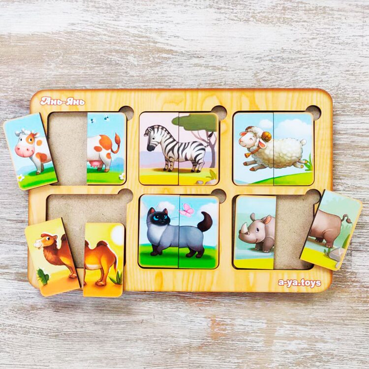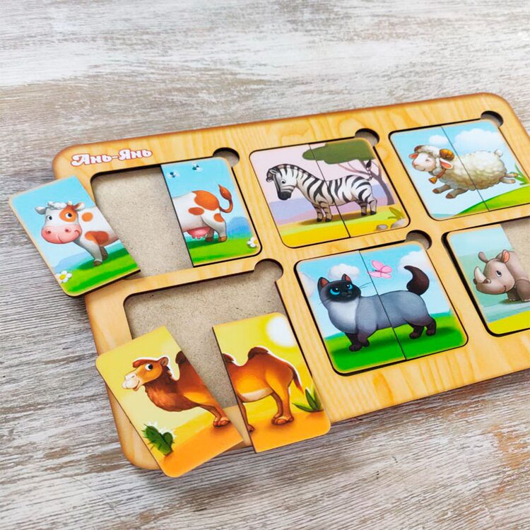 Збираємо правильно половинки тварин. Можна і поекспериментувати та приробити корівці хвіст зебри або верблюда. Але це лише як експеримент. Граючи, дитина познайомиться із тваринами різних видів, навчиться підбирати деталі, аналізувати.