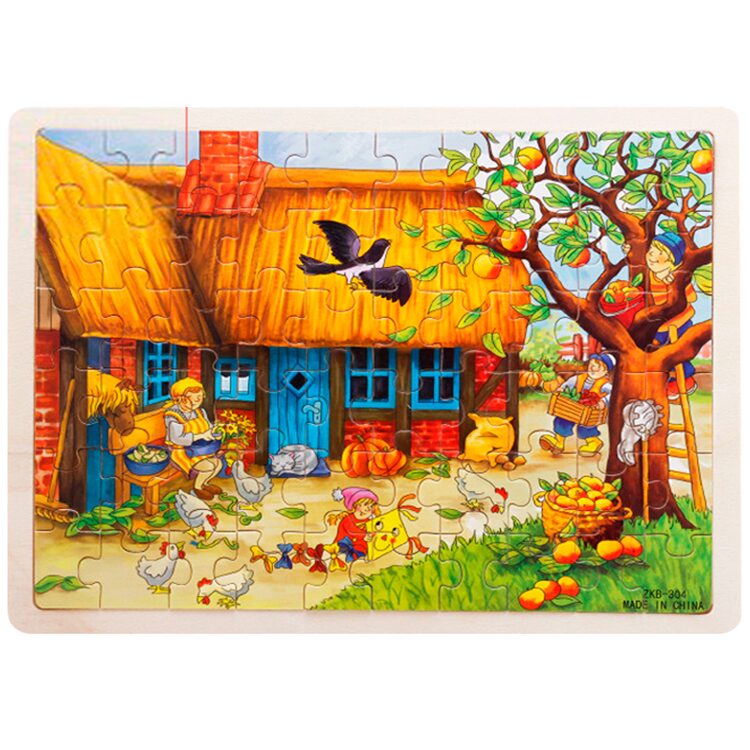 Пазл із зображенням домашніх тварин. На дерев'яному планшеті розташований пазл з 60-ти елементів - картинка тварин. Яскравий великий пазл буде цікавий для дітей від 3 років.