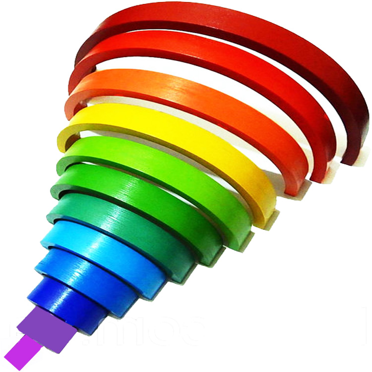 Великого розміру пірамідка з яскравими дугами у вигляді барвистої веселки. Граючи, дитина не тільки познайомиться з основними кольорами, а й їх відтінками. Всього 12 кольорів.