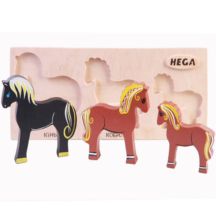 Вкладиші у вигляді конячок: коня, кобили і лоша. Граючи, розкажіть малюкові як називаються тварини, проведіть асоціації з іншими тваринами. У набір входить інструкція, яка допоможе Вам у грі з такого типом рамкою-вкладишем.
