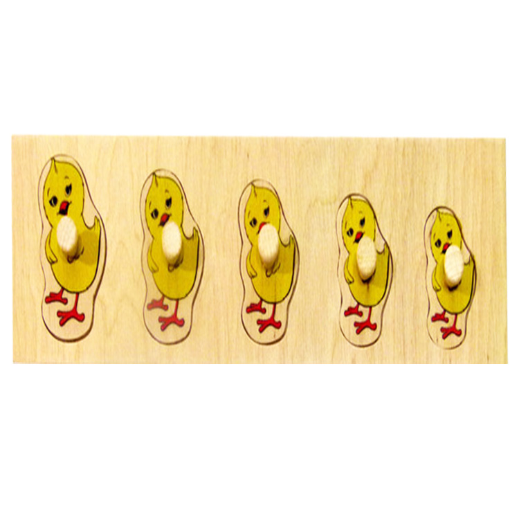 Рамка-вкладиш, яка допомагає дитині розібратися в поняттях розміру, "більше-менше". Жовтенькі курчата випали зі своїх гнізд і чекають поки їх поставлять назад по зростанню від найвищого до найнижчого або навпаки.