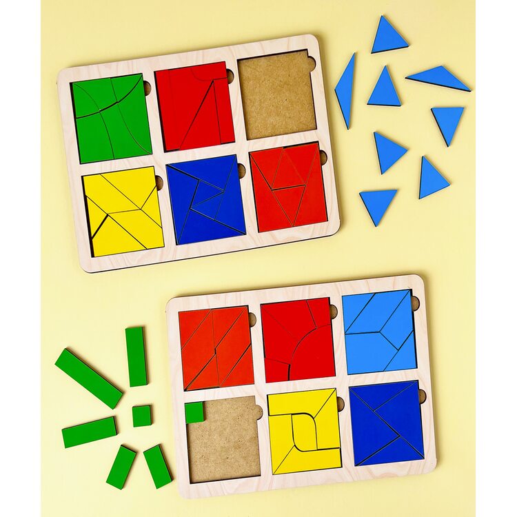 Суть даної методики: дитині потрібно скласти квадрат з різнокольорових шматочків різної форми. Ну а потім скласти квадрат одного кольору або декількох певних. Граючи, дитина знайомиться з сенсорним сприйняттям, співвідношенню цілого і частини, розвивається логічне і творче мислення. З різнокольорових деталей можна створити контури предметів, тварин або людей. А включивши фантазію, можна створити і цілу незвичайну картину.