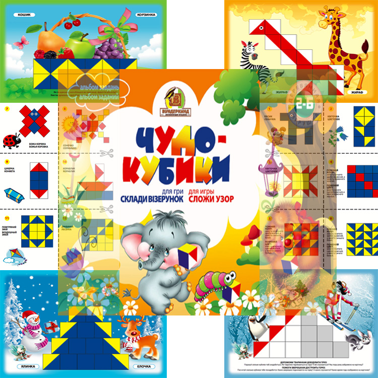 Зверніть увагу! В допомогу батькам і педагогам існує спеціальний кольоровий альбом «Склади візерунок» із зразками завдань. Купити його можна як на російській, так і на українській мові.