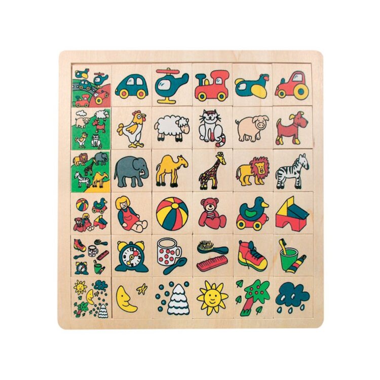 Розвиваючий гра для Знайомство дитини з різнімі видами предметів: одухотворених и Неодухотворенная. Гра складається з 36 деталей, на якіх зображені: транспорт, тварини домашні й екзотичні, іграшки, предмети побуту, картинки з погодними умів. Граючись, дитина винна найти ту картинку, якові считает за потрібне Віднести до того чи Іншого зображення-задачі (розміщене в Першому стовпчики). Малюк проводити асоціації, думає, запам'ятовує. Перекладаючі вкладиші на свои місця розповідайте дитині про Навколишній мире, назви тварин и транспорту, їх види.