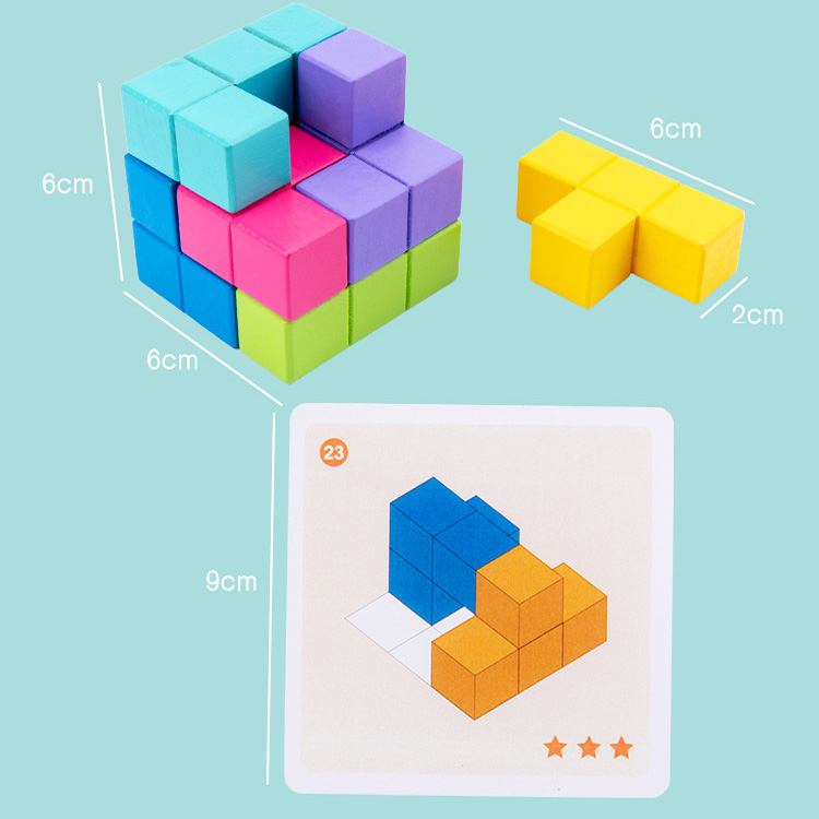 Чи могли Ви повірити, що з один і тих же деталей можна вибудувати 30 варіантів кубів. І кожна з деталей буде міняти своє місце положення. Набір складається з 7 об'ємних деталей і 15-ти двосторонніх карток із завданнями, а також підставки для викладання куба.