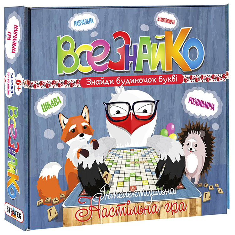 Граємо в слова. Кількість гравців 2,3,4. Суть гри: викласти на ігрове поле слова і заробити найбільшу кількість очок. Слова викладаються за принципом кросворду: по горизонталі - зліва-направо, по вертикалі - зверху-вниз. Для початківців, молодших гравців пропонується викладання слів в будь-якому напрямку по горизонталі та вертикалі.