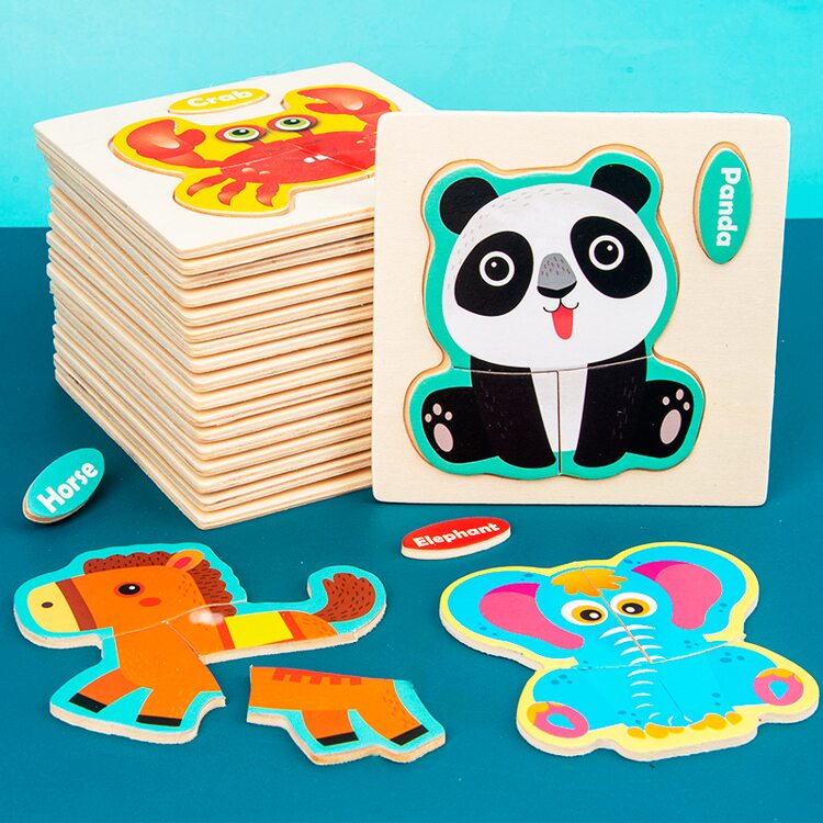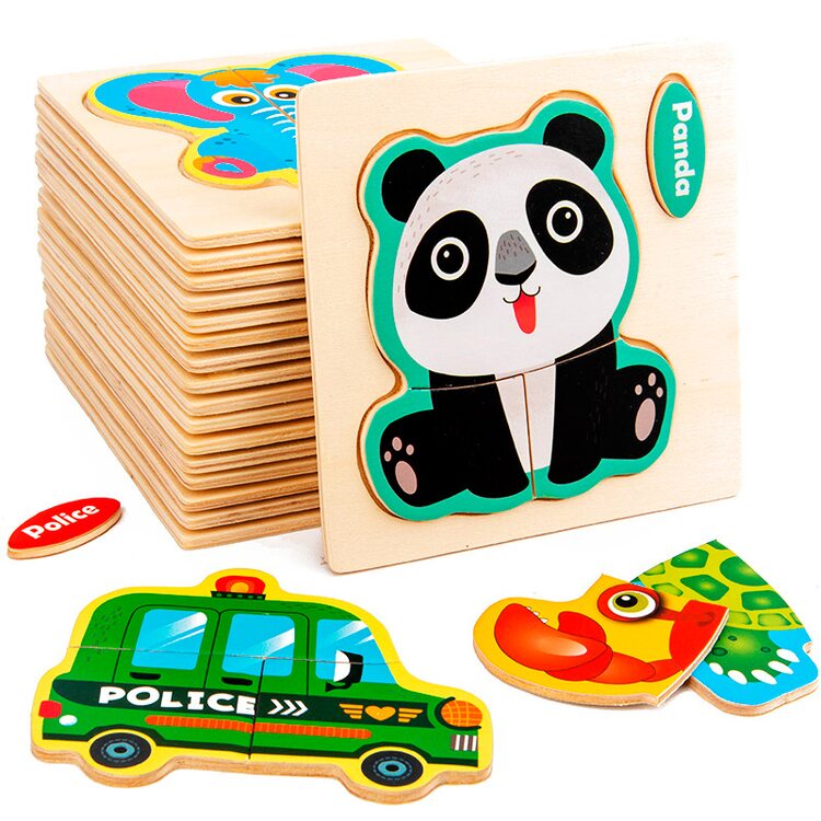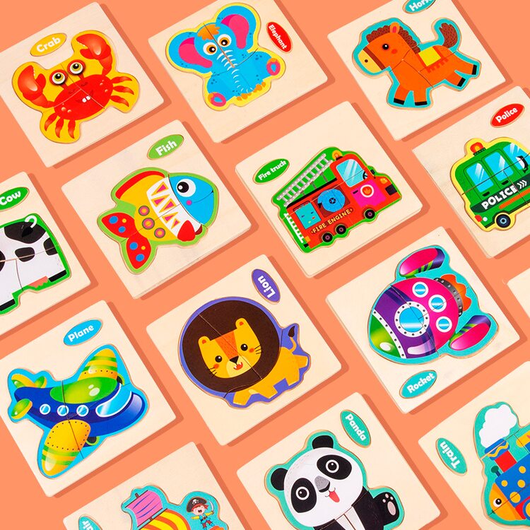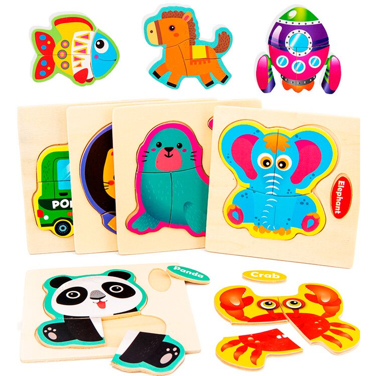 Пазли для початківців з картинками різних тварин, птахів, комах, транспорту.