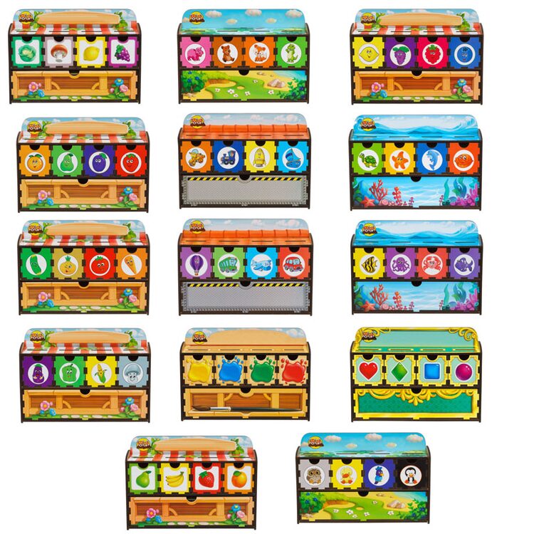 Розвиваючий Чарівний комодик різних тематик: тварини, фрукти, ягоди, транспорт, кольори, фігури, вчимося рахувати. Гра не тільки познайомить дитину з тим, що зображено на вкладишах, а й навчить рахувати, аналізувати, підбирати, сортувати за певними ознаками (вид, колір, розмір, назва тощо).