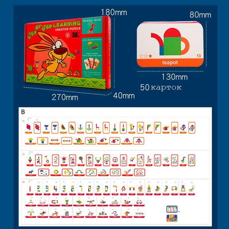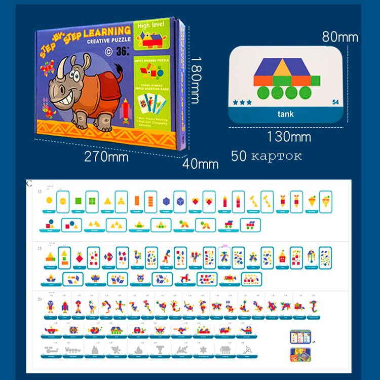 Серія розвиваючих ігор для розвитку творчого мислення, фантазії, креативності. Кожен набір є покроковим навчанням вирішення творчої головоломки-пазла, шляхом викладання різної форми деталей у візерунки, фігурки людей, тварин, комах, цифр, літер та ін.
