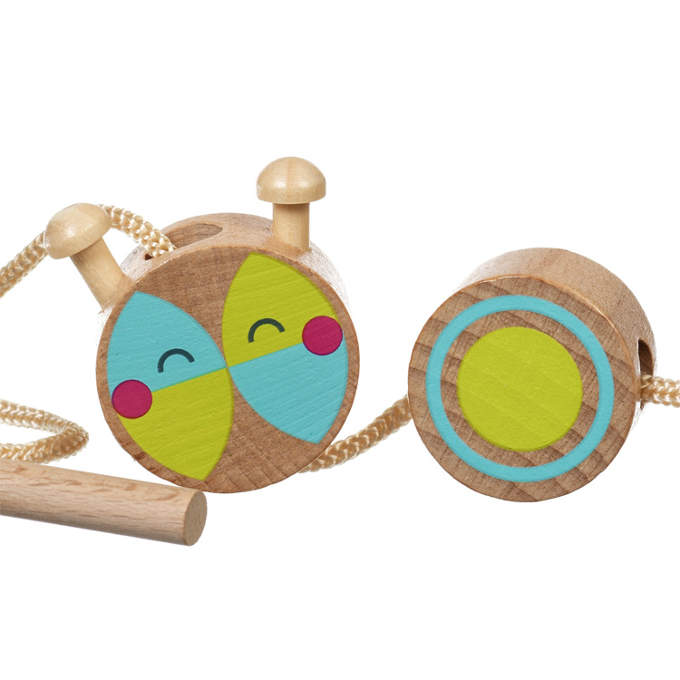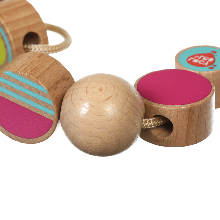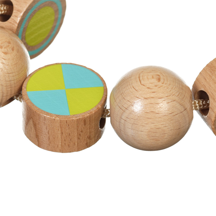 Шнурівка з дерев'яними деталями з яких потрібно зшнурувати тільце гусениці. Також можна робити мінібусики. Деталі ідеально гладкі, приємні на дотик. У наборі шнурочок з дерев'яним наконечником з двох кінців, 8 деталей для нанизування.