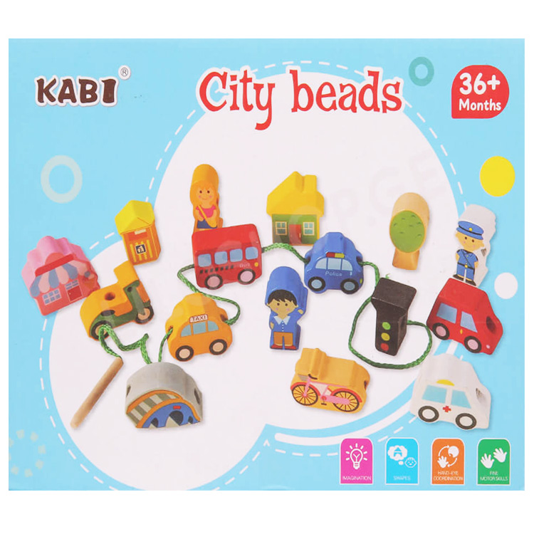 Дітки з цікавістю знайомляться з дерев'яними елементами, нанизаними на міцну мотузку. Хлопчики і дівчатка з легкістю розрізняють легкове авто, від автобуса, укладальник асфальту від швидкої допомоги або міліцейської машини.