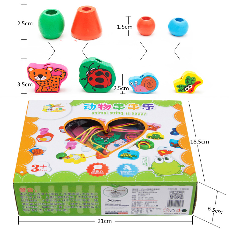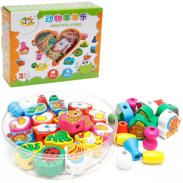 Шнурівка з великими, об'ємними деталями у вигляді різних представників тваринного світу. Крім фігурок тварин в набір також входять різнокольорові намистинки різних форм і розмірів. Весь комплект упакований в зручну прозору пластмасову коробку круглої форми.