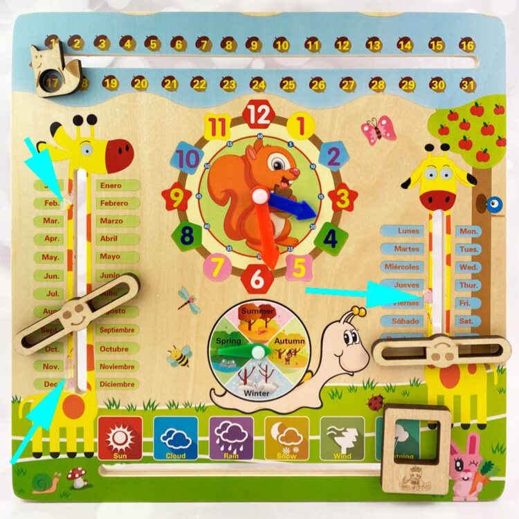 Изучаем темы времена года, месяцы, дни недели, время на английский языке с помощью настольного календаря.